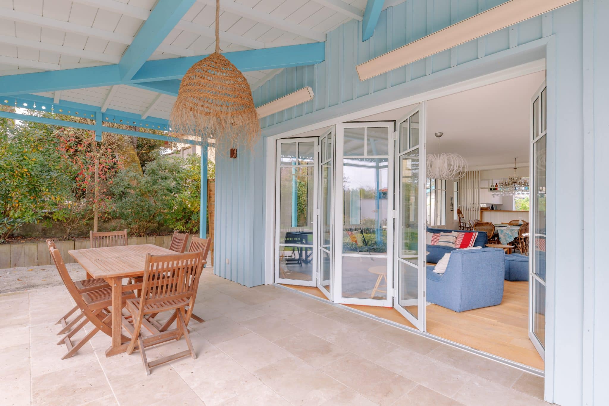 L’aluminium minimaliste permet de repousser les limites traditionnelles de la porte-fenêtre :
