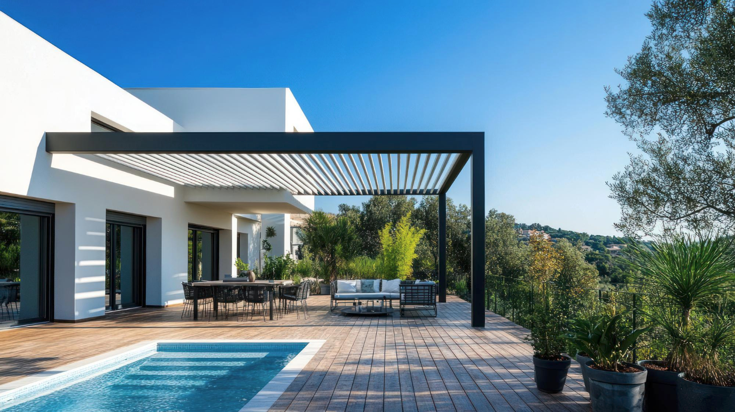Optez pour des pergola aluminium haut de gamme, conçues pour s’intégrer harmonieusement aux architectures contemporaines :